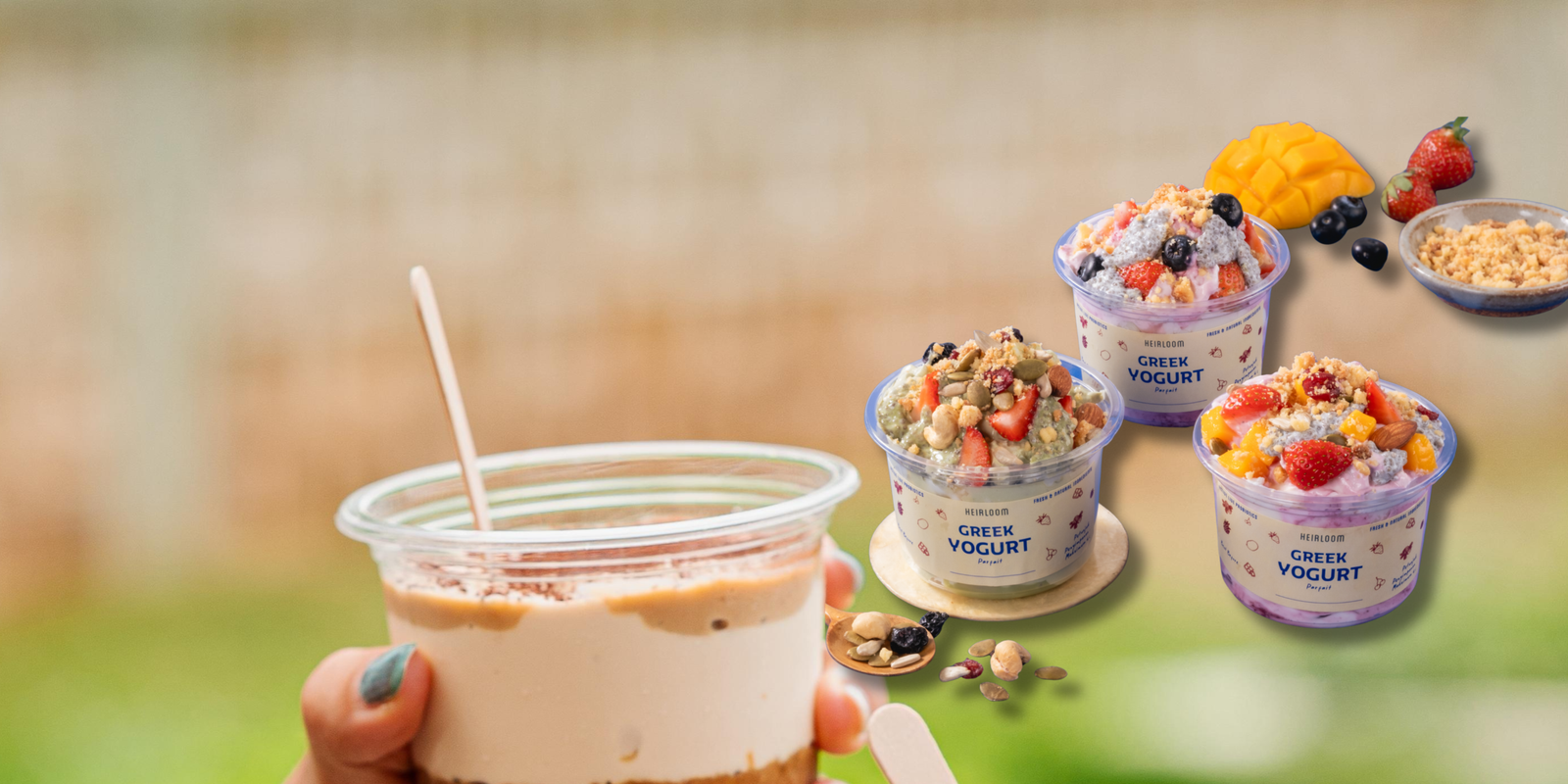 From our traditional zero added sugar plain Greek yogurt, house-made crumbly toppings and honey-kissed jams to our crave-worthy twists like Matcha Misu, Salted Caramel Brownies, and Ube Pandan, we blend creativity with clean ingredients for delights that taste as good as they make you feel.